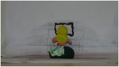 Cena 5: Menina parada, olhando pela janela ,muito triste. Voz em off pensamento da menina. O que seria de mim? Será que lembrariam de minha existência? Na verdade quem eu sou?